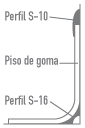 | El perfil S-16 actúa como soporte y conformación del zócalo sanitario, permitiendo el montaje del piso de goma sobre el mismo.El perfil S-10 actúa como terminación del zócalo sanitario, evitando la exposición de bordes horizontales donde pudiese depositarse cualquier tipo de suciedad. |