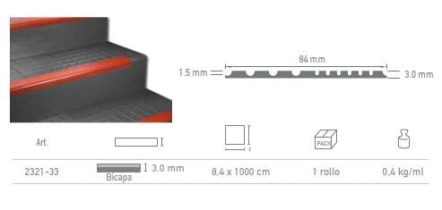 Escalón de goma para tránsito muy intenso con diseño de colores plenos y superficie de relieve.